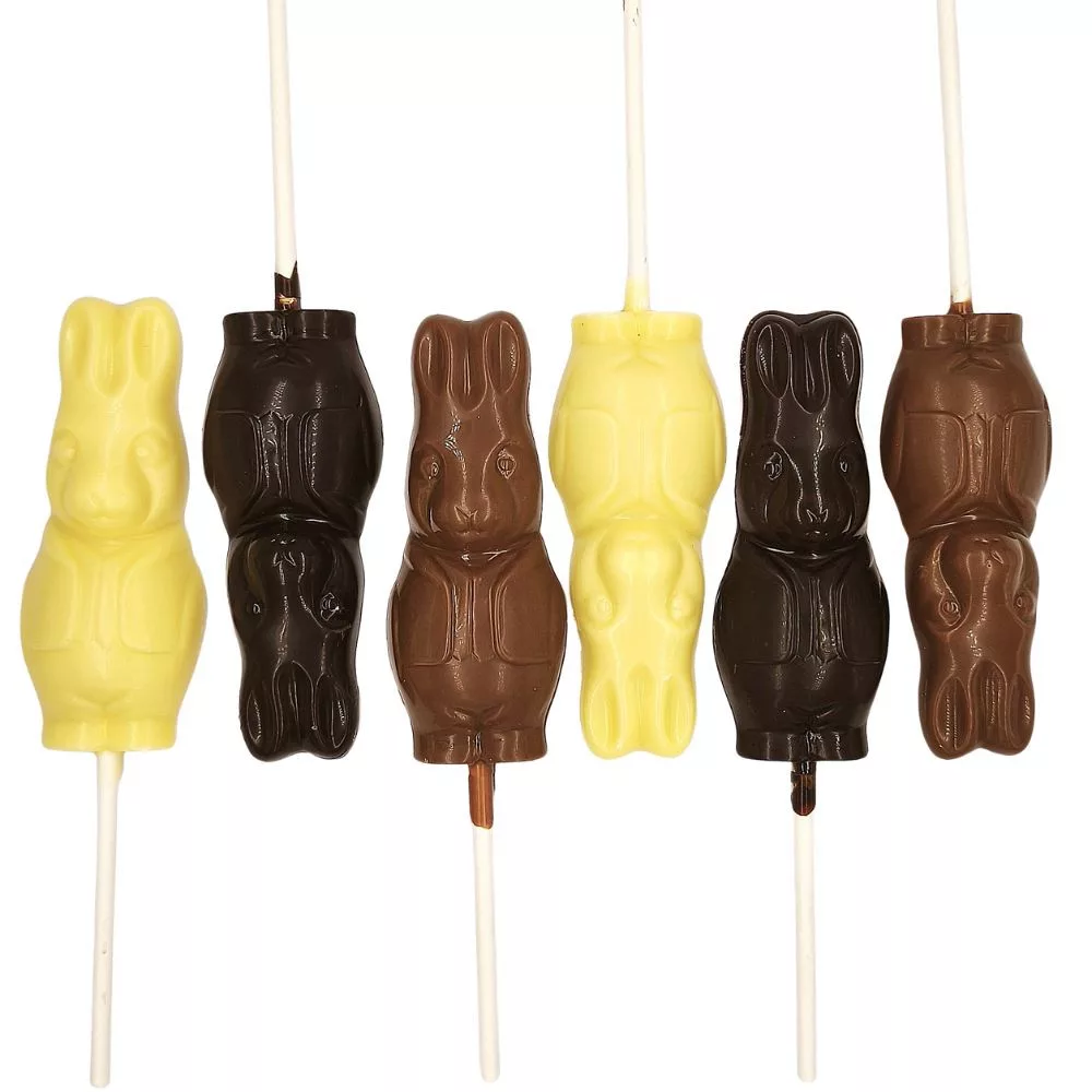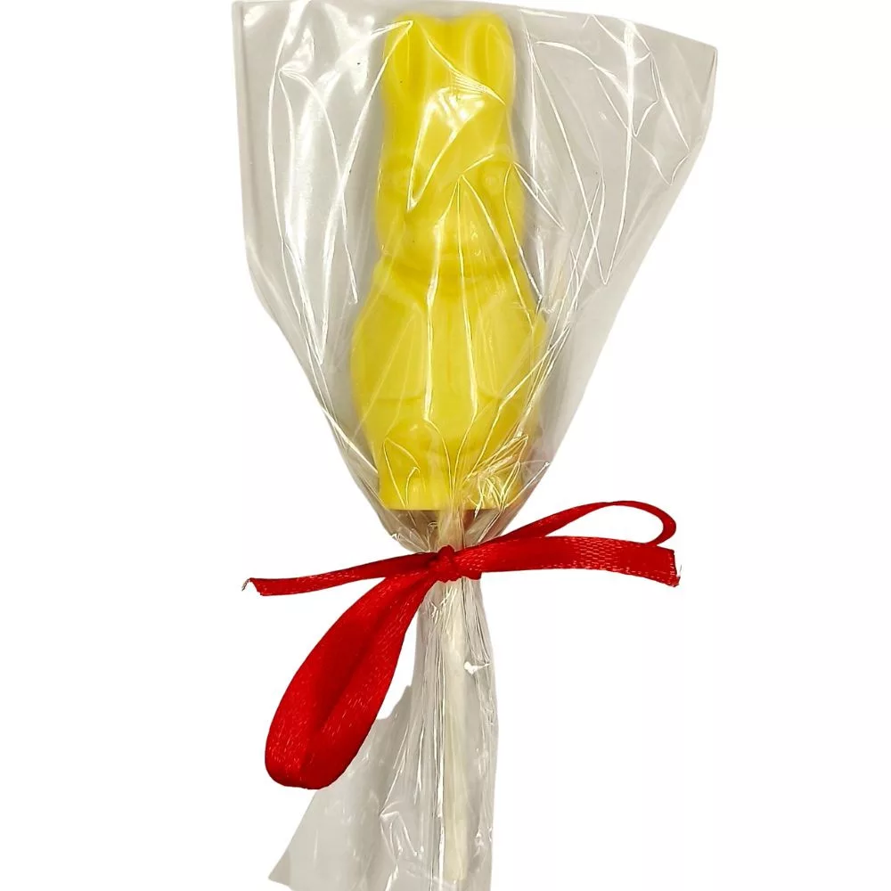 Apró figyelmesség Húsvétra. Magas minőségű belga fehér csokoládéból készült nyalóka nyúl formával.