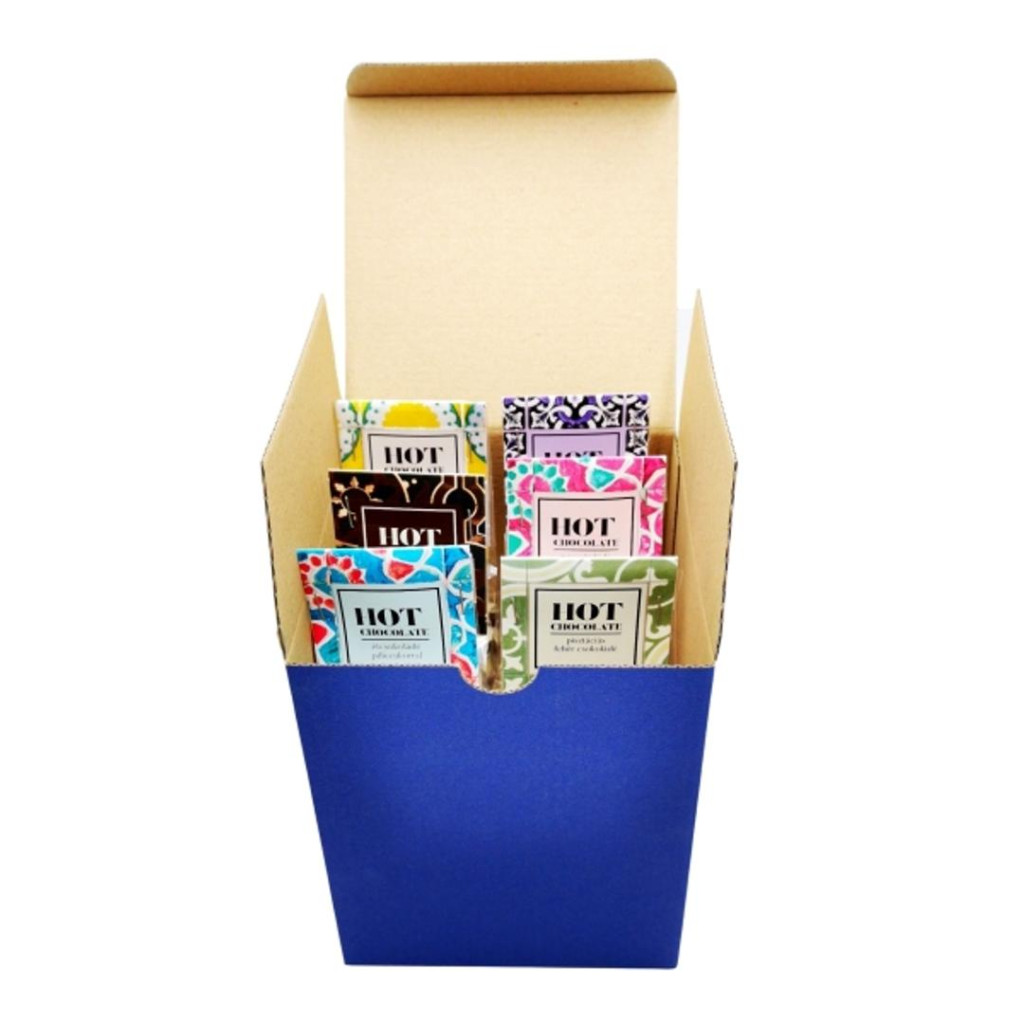 Ajándékdobozunk 6 db forró csokikockát rejt, amelyet elegánsan csomagoltunk be. Színe miatt elsősorban uraknak ajánljuk. A hideg őszi-téli estékre tökéletes ajándék. Ha külön nem jelzed, akkor vegyesen töltjük fel a 6 legjobban menő forró csokinkkal amelyből három ét, kettő tej és egy fehér csoki alapú lesz. Ha egyedi kérésed van, akkor csak írd be a megjegyzés rovatba hogy milyeneket szeretnél bele és akkor úgy fogod kapni.