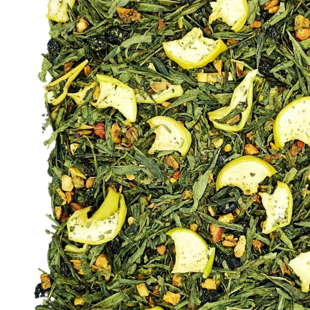 Összetevők: Zöld tea (51%), almadarabok, mazsola, almaszeletek, aroma, fahéjdarabok, édes szederlevél, manduladarabok.