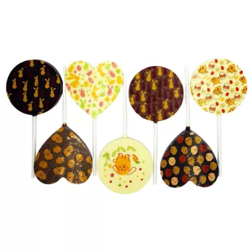 Apró figyelmesség Húsvétra. Kiváló minőségű belga fehér csokiból gyártott húsvéti mintás nyalóka.