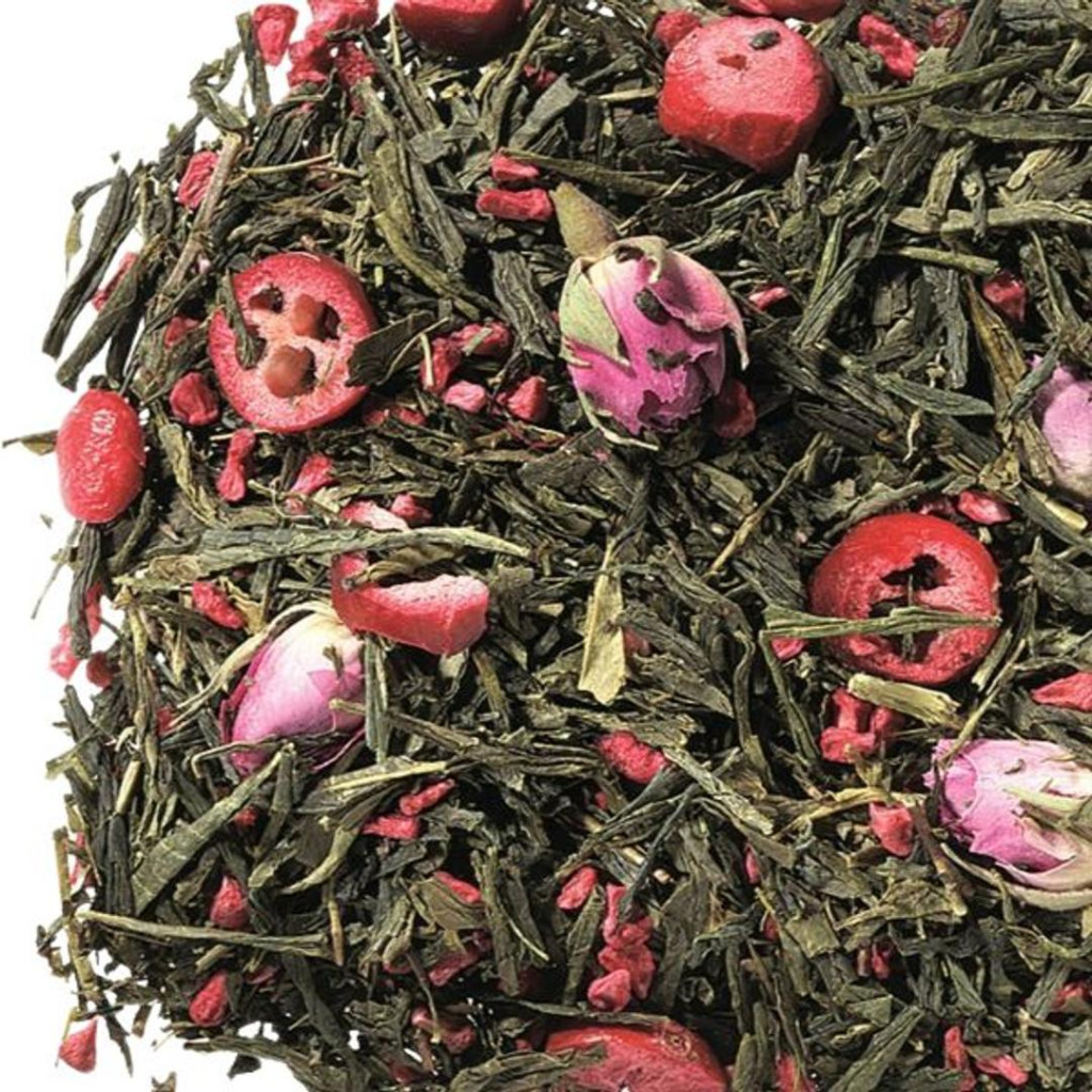 • Áfonya-málna-rózsa ízesítésű sencha tea